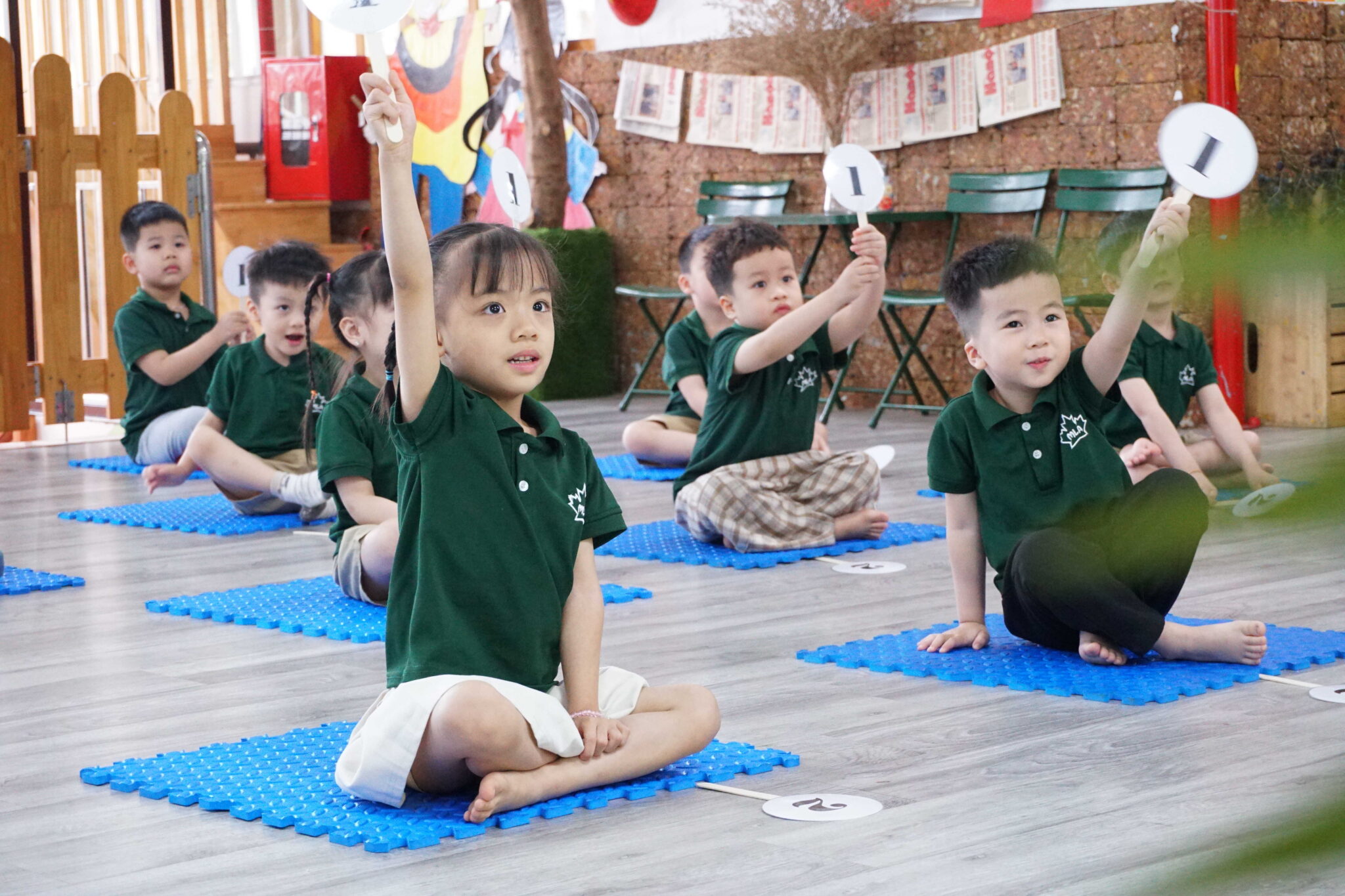 - Sự kiên trì đáng tự hào: Mỗi ngày tại trường, các con cùng cô ôn luyện vốn từ vựng, rèn luyện khả năng lắng nghe và tư duy logic.
