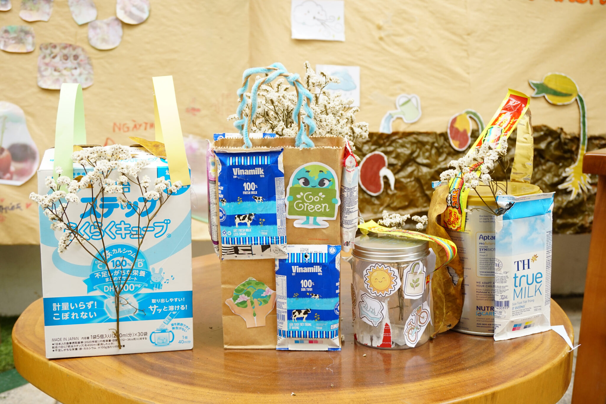 Những vỏ hộp sữa, vỏ bánh tưởng chừng đã hoàn thành “sứ mệnh”, nhưng tại Lá Phong Xanh, chúng lại...